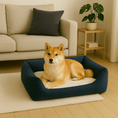 Miękkie, wysokie boki pełnią funkcję podłokietników i oparcia, dając psu poczucie bezpieczeństwa i wygodne podparcie głowy. Wewnętrzna poducha z puszystym wypełnieniem dopasowuje się do ciała zwierzaka, zapewniając komfortowy sen i wsparcie dla stawów.